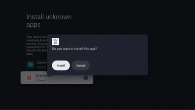After disabling Play Protect, we can continue to install the Downloader App which allows for the sideloading of apps and APKs on the onn, Google TV 4K, and Android Box.