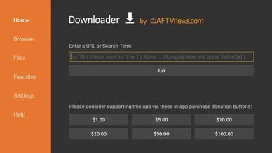 8. In the HOME tab hover over the URL bar and click the select button on your remote. type