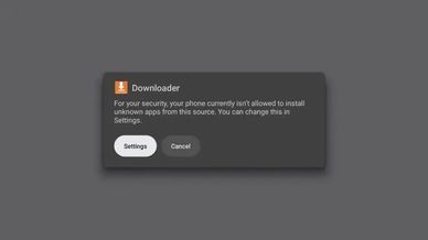 9. You are now prompted to Allow Unknown Sources for Downloader. Click Settings.